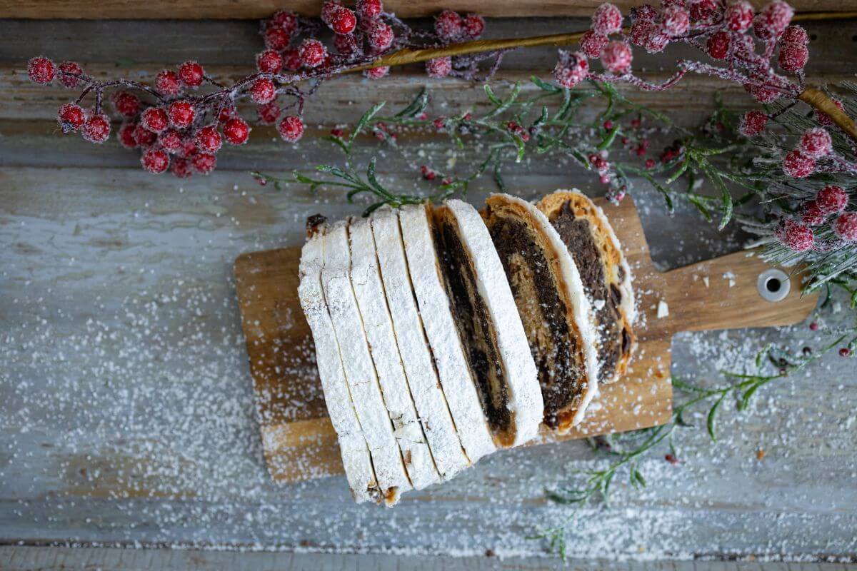 Liebe auf den ersten Blick und einfach zu schön, um ihn nicht aufzuschneiden. Darum verkaufen wir unseren Butter-Mohn-Stollen gleich in angeschnittenen Hälften zu jeweils 750 Gramm.
